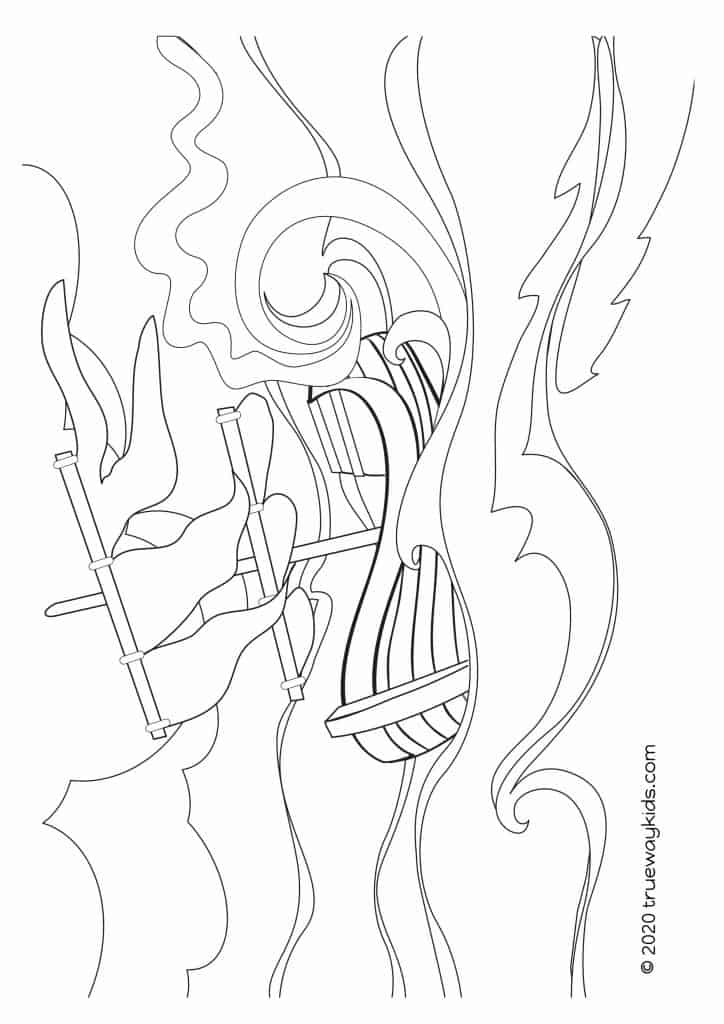 Vertel hoe Jona niet over de plank liep, maar aanbood om in zee te worden gegooid omdat hij de storm veroorzaakte. Herinner je kinderen eraan dat God genadig was en hem redde met de grote vis.