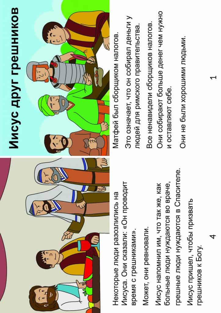 Поговорите о том, как Иисус призвал разных людей следовать за Ним. Напомните ему, что многие из учеников были рыбаками, но Матфей был сборщиком налогов.