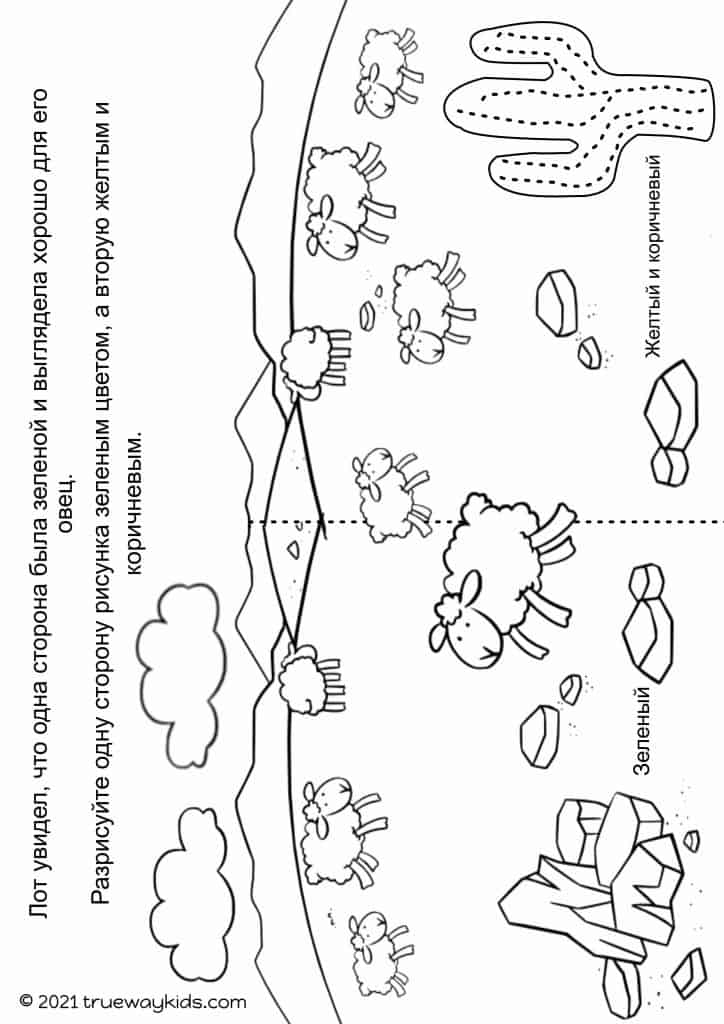Лот увидел зеленую траву, и хотя это была внешне лучшая земля, но не лучшая на самом деле. Объясните, что, хотя на первый взгляд земля выглядела хорошо, но на ней жили плохие люди, которые делали плохие вещи. Мы обсудим больше о Содоме и Гоморре в следующем уроке.