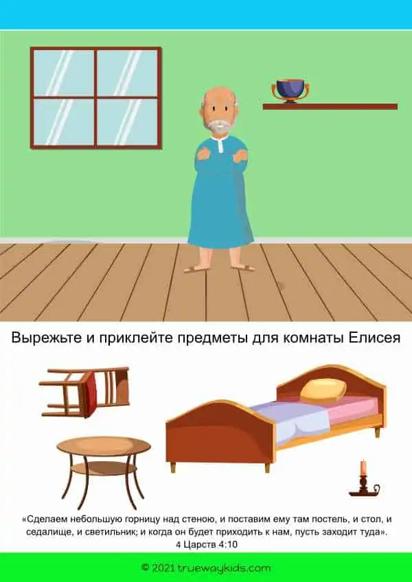 Подумайте о том, как Иисус говорит в Евангелии от Иоанна 14:2-3: «В Доме Отца Моего Обителей много. А если бы не так, Я сказал бы вам: «Я иду приготовить Место вам.» И когда пойду и приготовлю вам место, приду опять и возьму вас к Себе, чтобы и вы были, где Я.». Объясните, как Елисей остановился в доме сонамитянки, проходя мимо, но Иисус приготовил место для нас на Небесах, чтобы жить с Ним вечно.