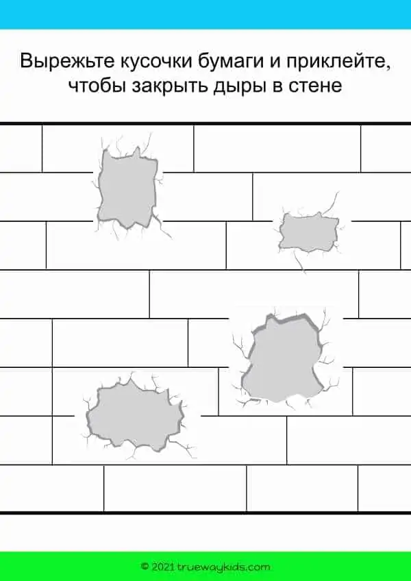 Затем попросите ребенка сбить часть стены. Вы можете использовать игрушки, чтобы быть врагом и сбивать стену.