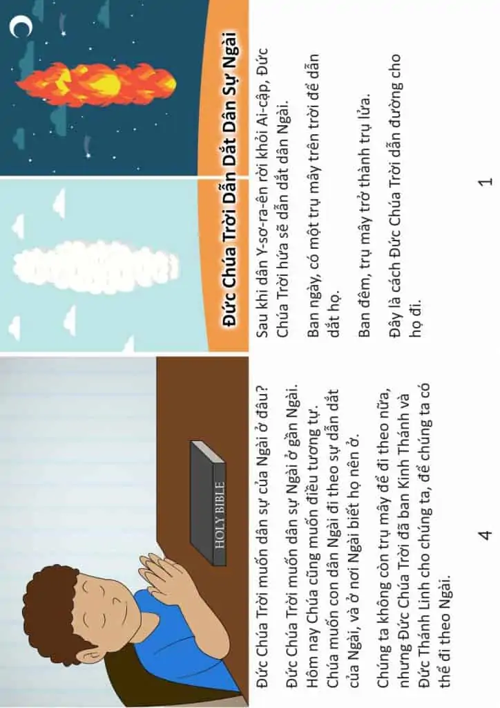 Lấy cuốn Kinh Thánh và mở ra. Chỉ cho bé rằng đọc Kinh Thánh là cách chúng ta biết Đức Chúa Trời muốn chúng ta làm gì. Đọc Thi thiên 119: 105. Khi cố bước đi trong đêm tối, chúng ta dễ bị té ngã trầy sướt. Khi bật đèn lên, cho chúng ta nhìn thấy nơi chúng ta sẽ đi và giúp chúng ta tránh bị tổn thương. Hãy vui mừng vì Đức Chúa Trời ban cho chúng ta Kinh Thánh để làm ánh sáng cho đường lối của chúng ta. Hãy cầu nguyện với bé và xin Chúa Giê-xu giúp bạn làm theo sự dẫn dắt của Ngài.