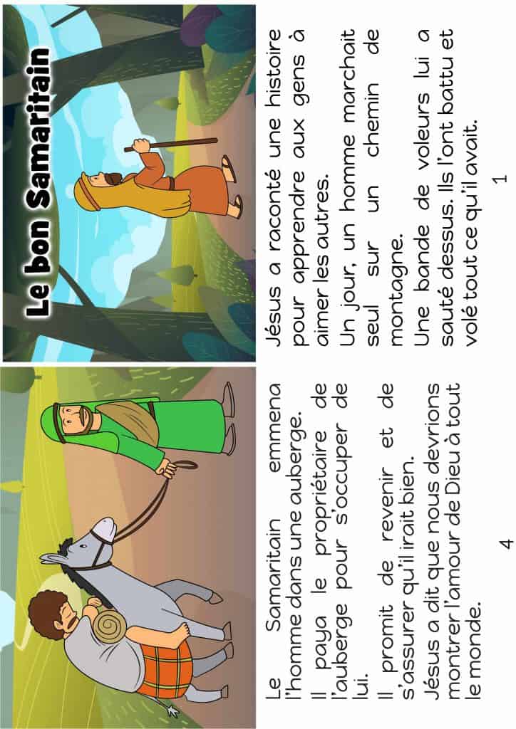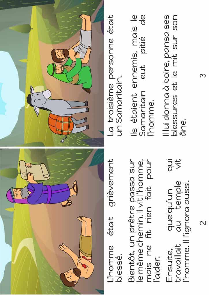 Lisez la parabole tirée de la Bible de votre enfant. Expliquez que l’homme qui questionnait Jésus essayait de le piéger quand il a demandé « Qui est mon prochain ? ».
