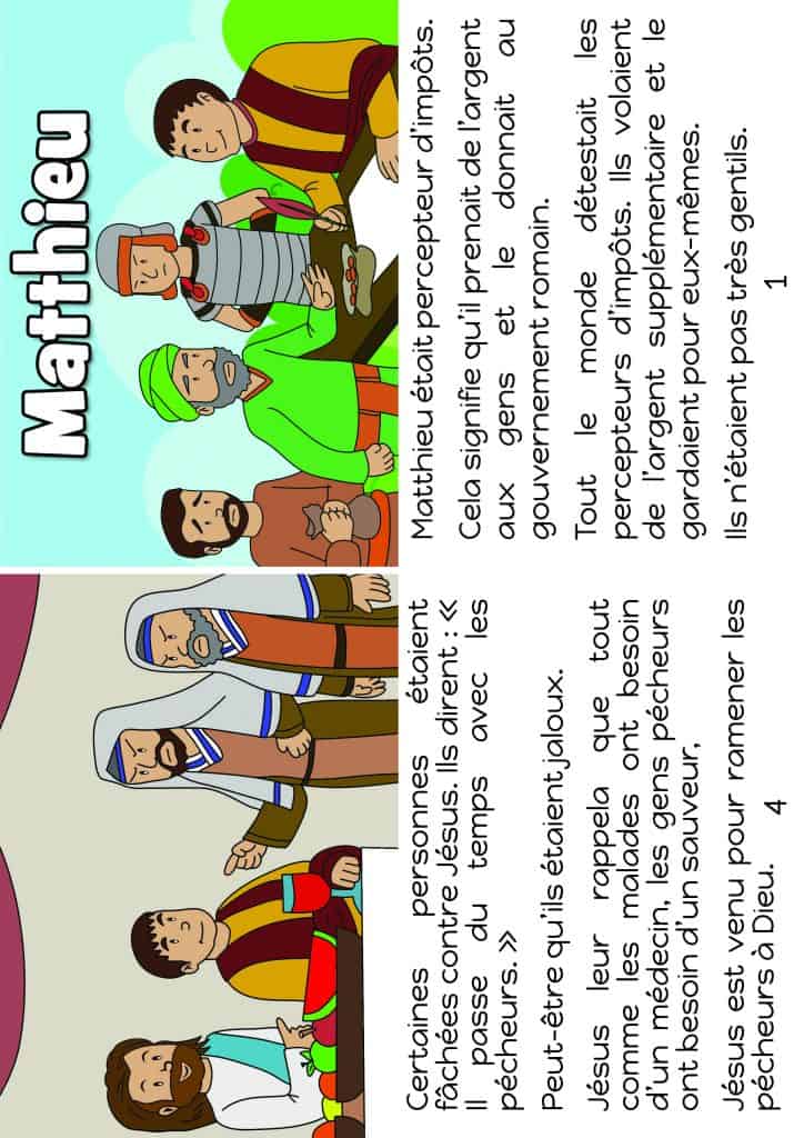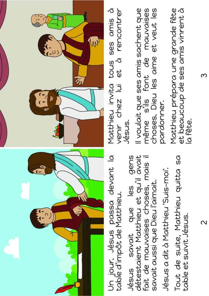 Faites remarquer que même si Matthieu était un voleur et quelqu’un de pas très gentil, Jésus lui a donné une autre chance. Racontez comment Matthieu a laissé derrière lui son ancienne vie pour suivre Jésus.