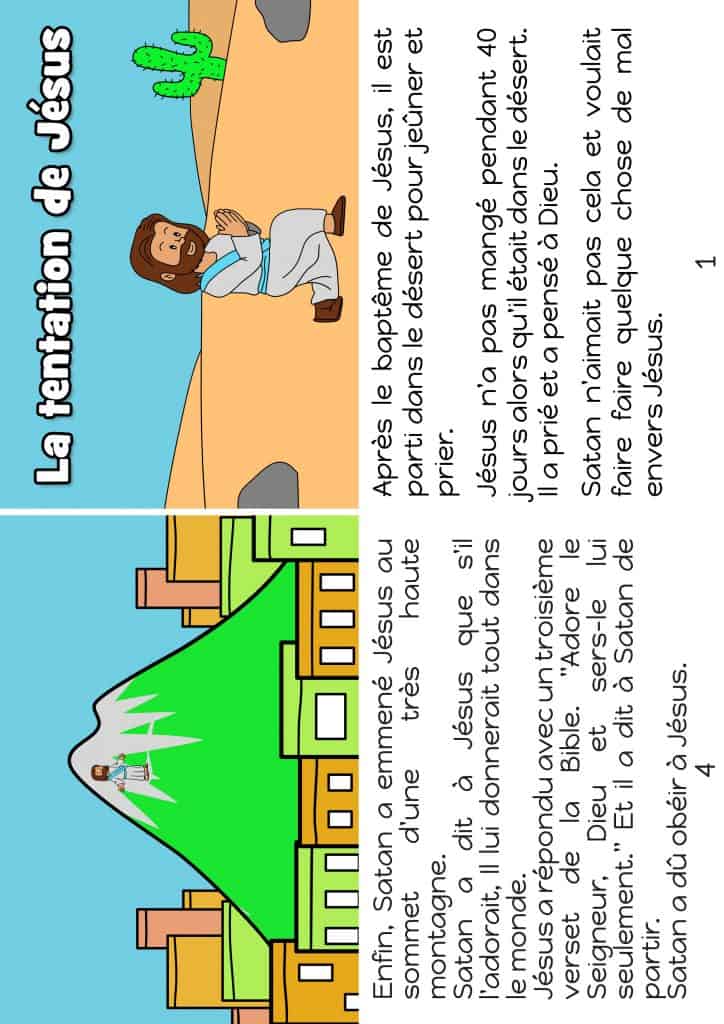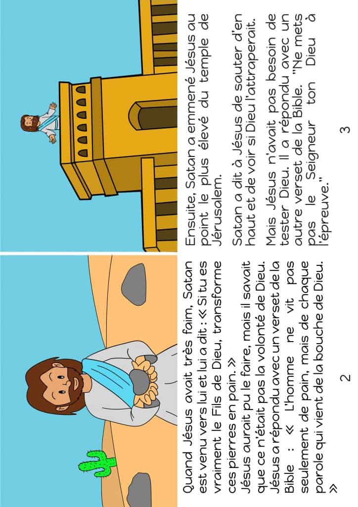 Parlez de la façon dont Satan a tenté Jésus trois fois, mais expliquez que Jésus a résisté à ses tentations. Demandez ce que Jésus a fait pour résister à la tentation. Si nécessaire, aidez l’enfant à comprendre que chaque fois Jésus citait une Écriture pour résister à la tentation. Faites remarquer que Jésus n’a jamais péché.