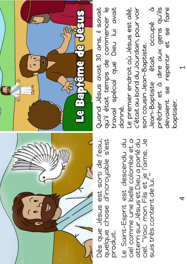Parlez de la façon dont même si Jésus n’avait pas besoin du salut puisqu’il était sans péché, il a été baptisé pour être un exemple, obéir à Dieu et faire ce qui est bien. Demandez à l’enfant ce qu’est un exemple, un modèle. Expliquez qu’un bon modèle est quelqu’un qui devrait être imité. Faites une petite partie de « Suivez le leader ». Tour à tour avec votre enfant. Parlez de la façon dont vous vous imitez dans le jeu, Jésus a fourni un exemple afin que nous puissions l’imiter et apprendre à faire ce qui est bien.