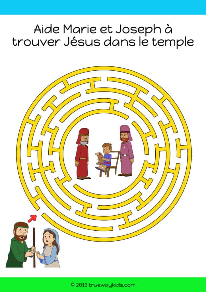 Racontez comment, sur le chemin du retour de Jérusalem, Marie et Joseph ont remarqué que Jésus avait disparu. Vous pourriez partager une histoire sur le fait de vous être perdu ou d’un personnage fictif qui s’est perdu dans un supermarché. Pensez aux émotions de l’enfant et du parent. Parlez de la façon dont il est toujours important que nous restions près de nos parents et de tenir leurs mains dans des endroits plein de monde afin de ne pas se perdre.