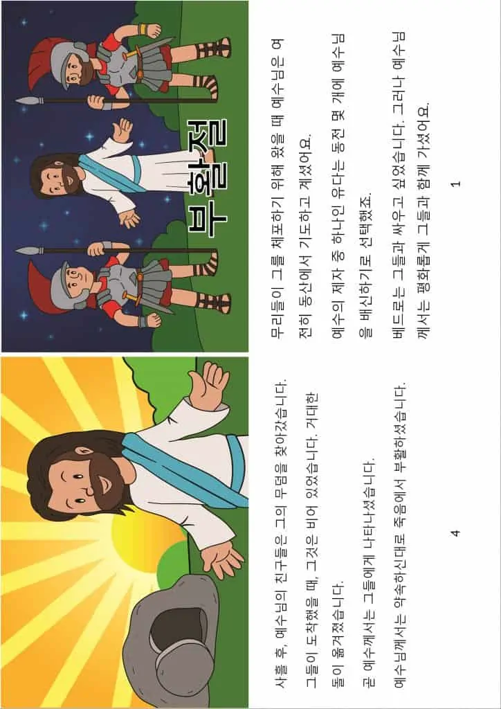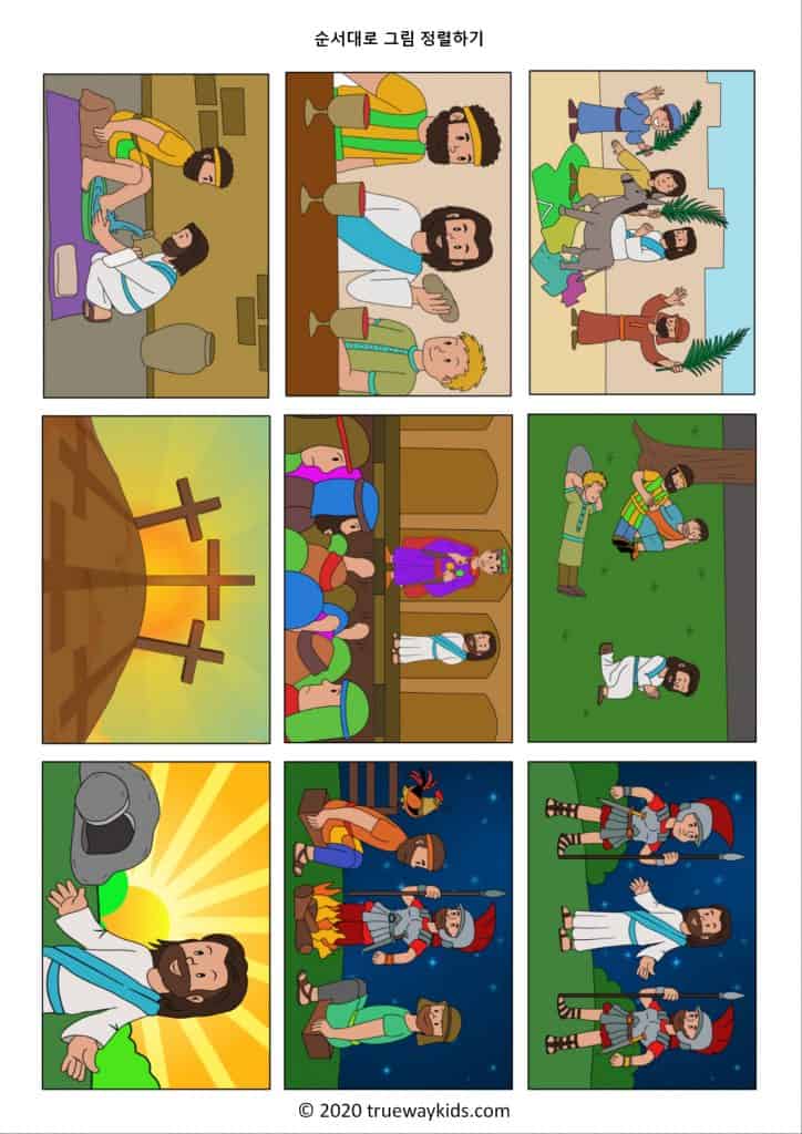 십자가 – 십자가는 정말 나쁜 일을 한 것에 대한 벌이라고 설명해주세요. 자녀에게 여러 일들에 대해 어떤 벌을 제시하도록 시켜보세요. 예를 들어, 동생을 때리고 거짓말을하거나 무언가를 훔치는 등. 또, 아무 잘못도 하지 않은 사람에게 어떤 벌을 주어야하는지도 물어보세요. 아이들에게 예수님은 완전한 삶을 사셨지만 최악의 형벌을 받았으며 사형을 선고 받았다는 것을 상기 시켜 주세요.