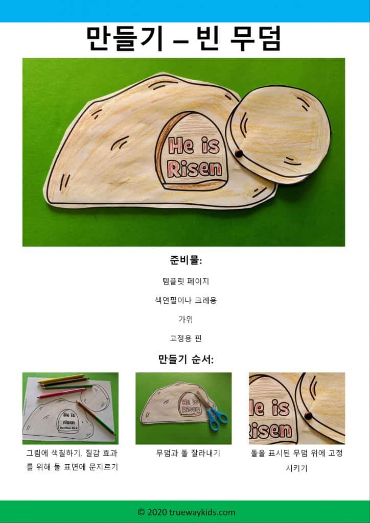 빈 봉투 – 무덤이 비어 있었다고 설명해 주세요. 예수께서는 죄와 죽음을 정복하시고 부활하셨습니다. 예수님이 우리가 하나님과 영원한 생명과 교제를 누릴 수 있도록 길을 마련해 주신 것을 상기시켜 주세요.