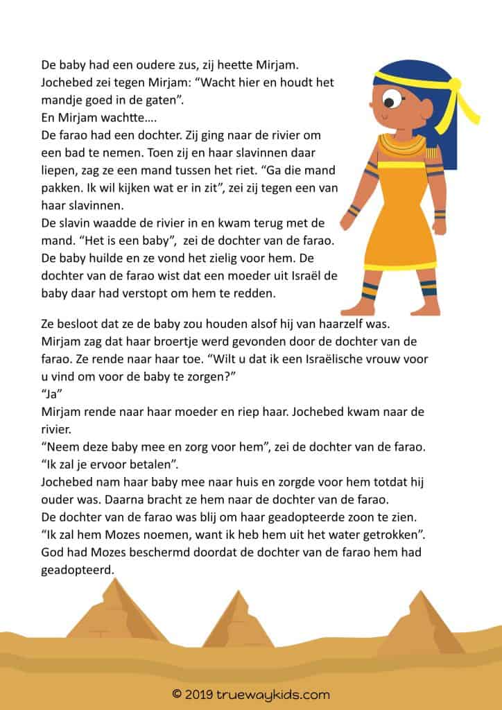 Herinner je kind aan de les van vorige week over Josef. Leg uit dat de kinderen van Israël, die nu al bijna vierhonderd jaar geleden in Egypte zijn komen wonen, de familie van Mozes is.