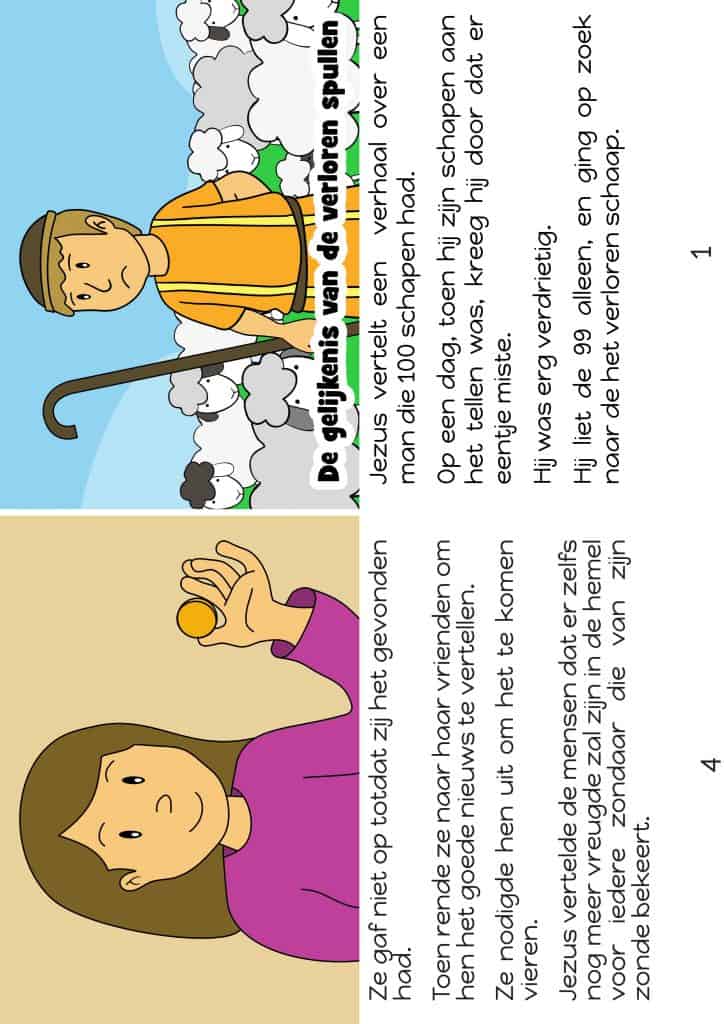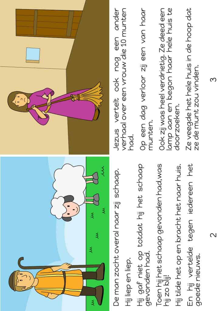 Vraag je kind of het nog weet wat een gelijkenis is. Herinner je kind eraan dat een gelijkenis een alledaags verhaal is met een geestelijke les. Lees samen Lukas 15.1-11 uit de kinderbijbel.