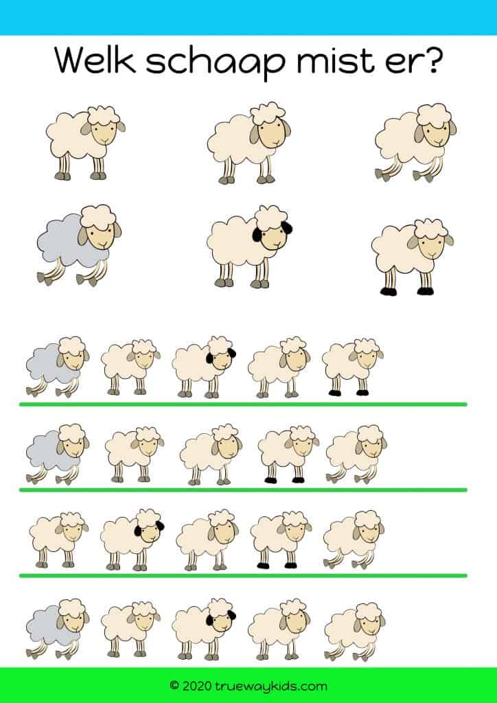 Druk de kaartjes van het werkblad af. Leg de kaarten met de rug naar boven op tafel. Verstop het schaap onder een van de kaartjes. Draai om de beurt een kaart om. De speler die als eerste het schaap gevonden heeft is de winnaar en mag de volgende keer het schaap verstoppen.