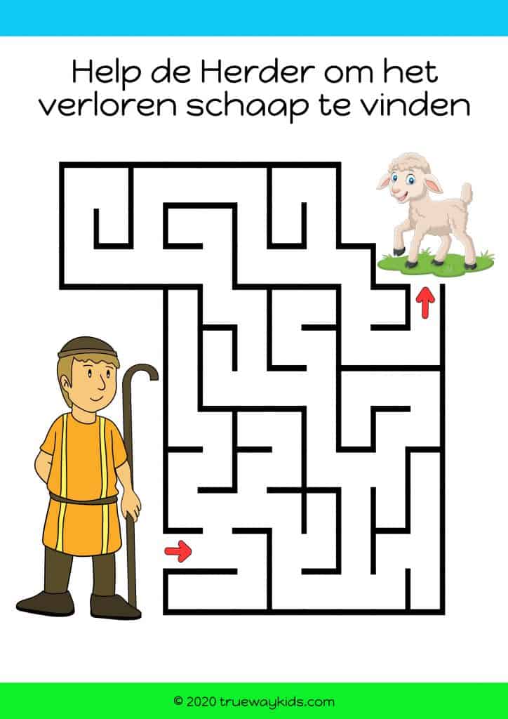 Lees Jesaja 53.6 – “Wij dwaalden rond als schapen, ieder zocht zijn eigen weg; maar de wandaden van ons allen liet de HEER op hem neerkomen.” Vertel hoe graag God wil dat wij dicht bij Hem zijn, veilig en geliefd, maar dat we vaak worden afgeleid van Hem door andere dingen. Vertel als voorbeeld dat als jij je kind vraagt om dicht bij jou te blijven in een winkelcentrum, hij of zij soms afgeleid wordt door speelgoed, snoep of dingen die om je heen gebeuren. En net zoals dat jij op je kind past omdat hij/zij waardevol voor je is, zo zal ook God voor hen zorgen, omdat zij waardevol zijn voor Hem.