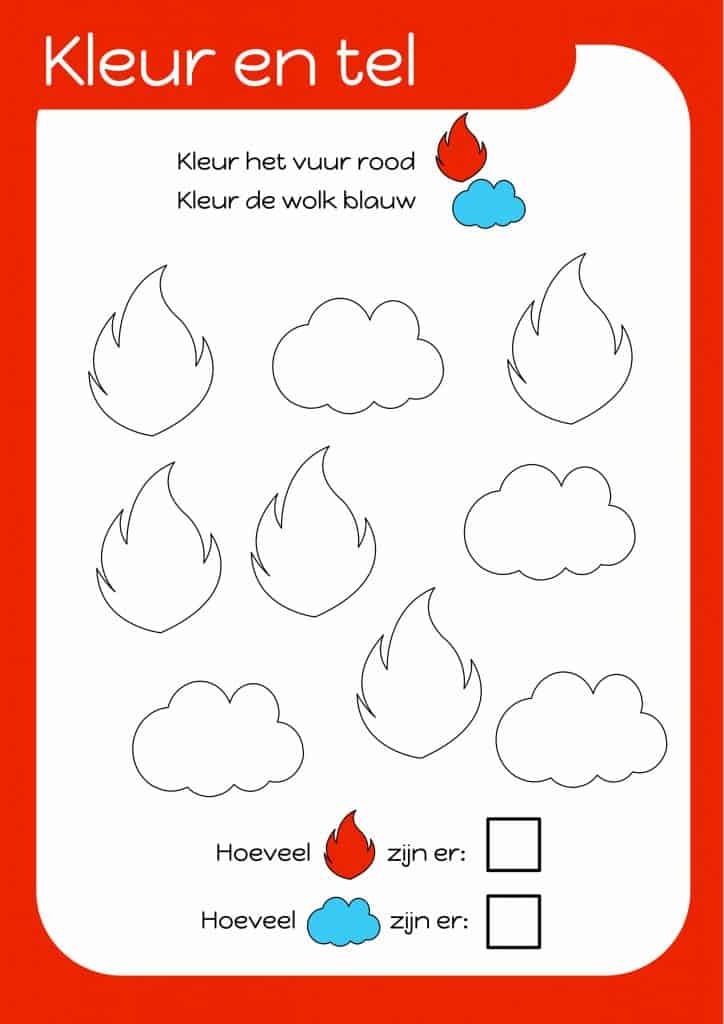 - Teken 2 lijnen op de keukenrol, zodat je 2 helften hebt: de ene kant is wolk en de andere kant vuur