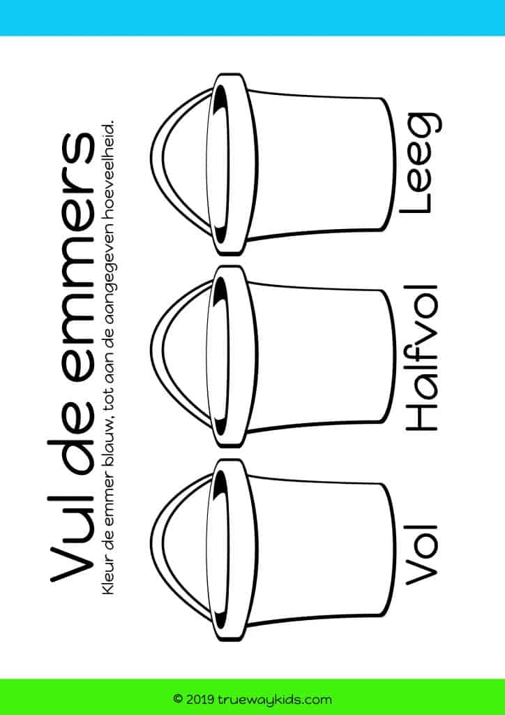 Geef je kind een beker en laat hem de kleinere bak met water vullen.