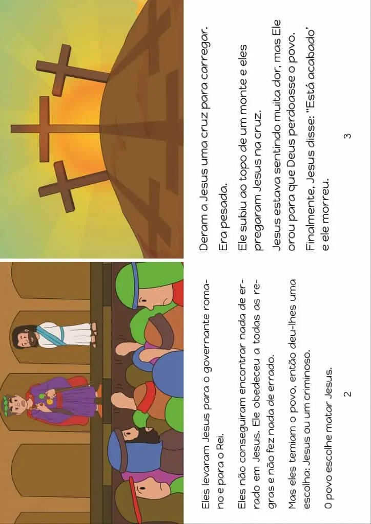 A Cruz – Explique que a cruz foi um castigo por fazer algo muito ruim. Peça ao seu filho para lhe dar punições sugeridas para coisas diferentes. Por exemplo, bater no seu irmão, dizer uma mentira, roubar algo e assim por diante. Pergunte a eles que punição você deve dar a alguém que não fez nada de errado? Lembre-os de que Jesus viveu uma vida perfeita, mas recebeu a pior punição e foi sentenciado à morte.