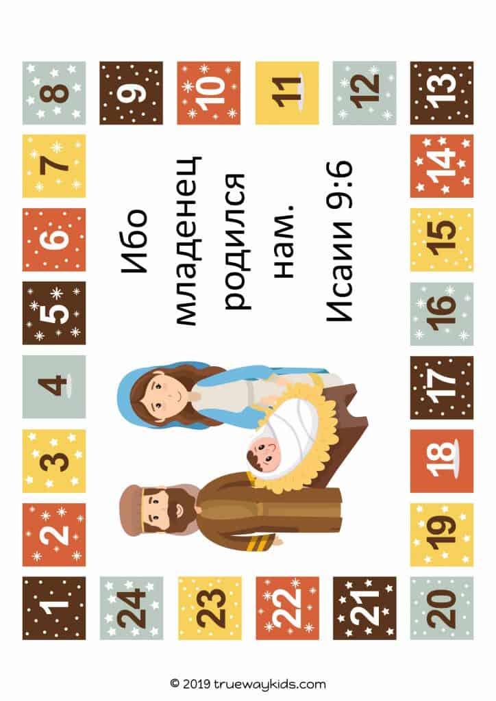 Поговорите о том, как люди могут сказать, что у них нет достаточно места для Иисуса. Поговорите о том, как, даже в рождественские праздники сегодня, люди не хотят, чтобы Иисус был их частью. Некоторые люди любят елки и подарки, но забывают, что рождение Иисуса, вот истинная прична Рождества. Напомните ребенку, что Иисус хочет жить в наших сердцах. Мы должны быть уверенны, что Иисус имеет место в нашей жизни. Поэтому мы предлагаем Вам читать Слово Божье и делиться чем-то со своим ребенком об Иисусе в дни, предшествующие Рождеству.