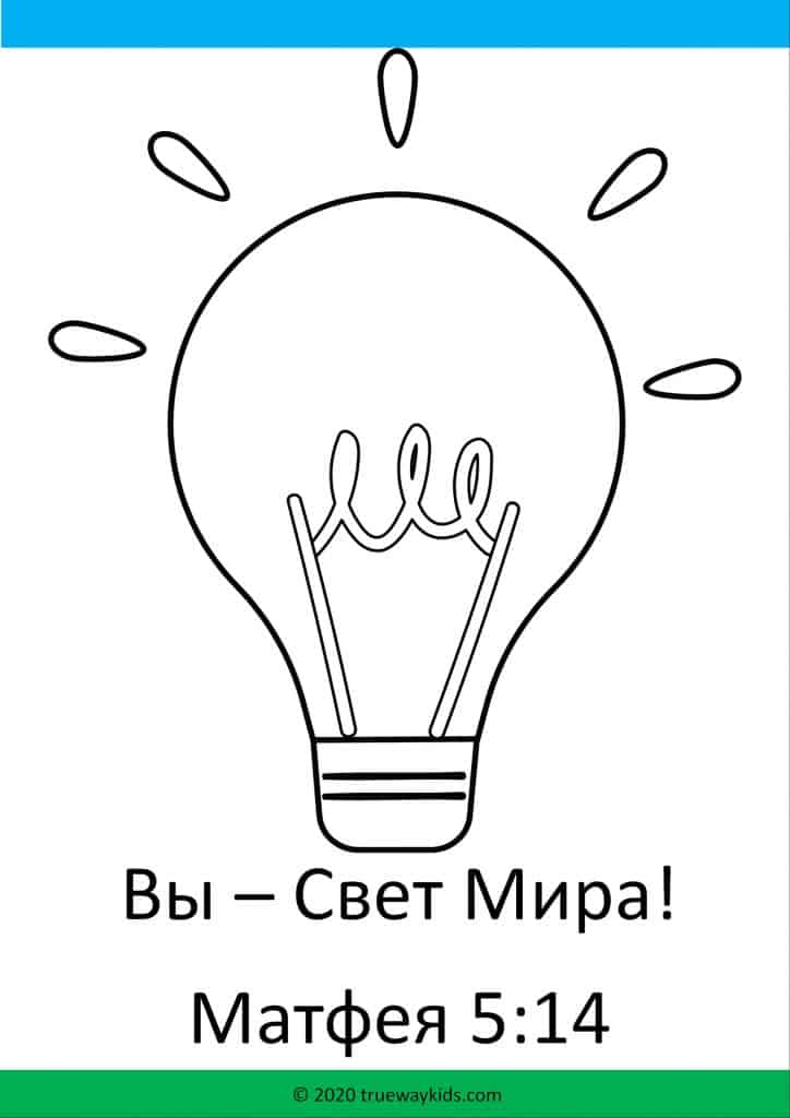 Скажите что христиане также сравниваются со светом. Чтобы видеть в темной комнате, нужно включить свет. Возьмите фонарик и объясните, что он поможет вам лучше видеть. Спрячьте фонарик под диванными подушками. Спросите ребенка, может ли он видеть лучше сейчас? Когда он скажет нет, скажите, что вы будете менять место расположения света. На этот раз поместите фонарик под чашку. Спросите, освещается ли комната светом? Продолжайте перемещать фонарик (или позвольте ребенку) и скажите, что он светит лучше всего, когда он находится на видном для всех месте. Объясните, что так же, как фонарик должен быть виден, так и христиане должны жить так, чтобы все могли видеть свет Христа в них.