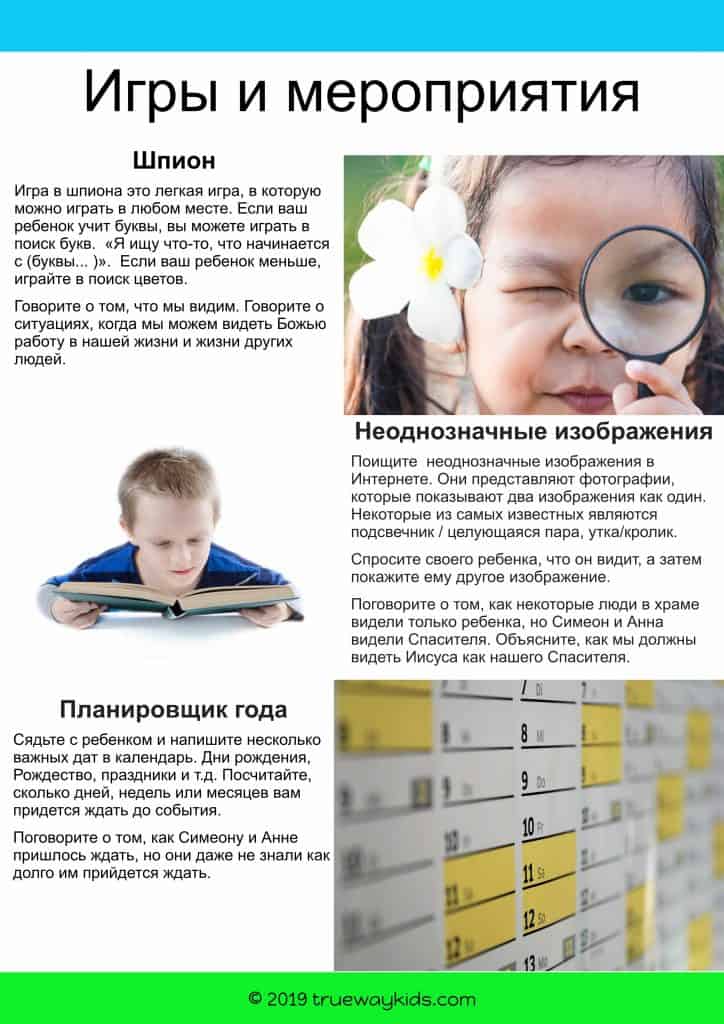Подумайте о том, как Симеон и Анна отреагировали на встречу с Иисусом. Напомните своему ребенку, Иисус все еще хочет, чтобы мы встретились с Ним и признали Его Спасителем.