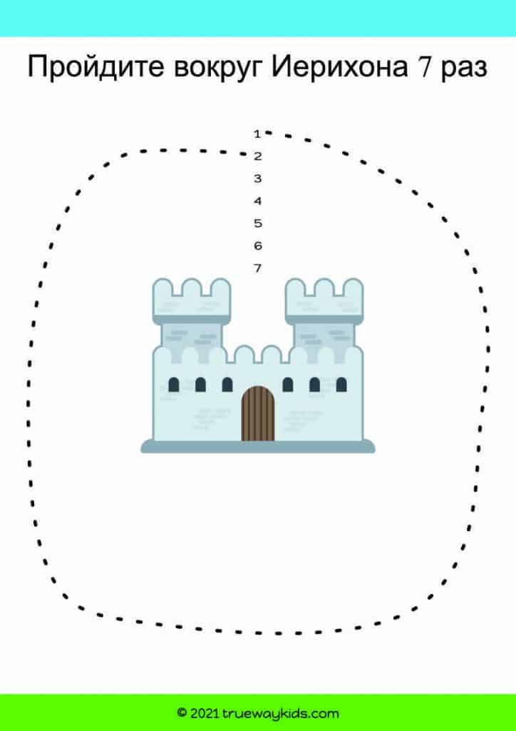 Спросите ребенка, пытался ли он/она когда-нибудь сделать что-то невозможное. Поговорите о невозможных вещах. Некоторые из них могут быть глупыми (например, кошки не могут говорить по-английски), а другие могут быть более серьезными (мы не можем спасти себя от грехов). Поговорите о том, что с Богом все возможно. Покажите ребенку картинку с изображением большой стены вокруг города (например, Иерусалима). Спросите ребенка легко ли будет разрушить стену. Предложите несколько вещей, которые могут проделать в ней дыру. Поговорите о том, что Бог не выбрал трактор или разрушительный шар. Вместо этого Он велел людям пройти вокруг города.