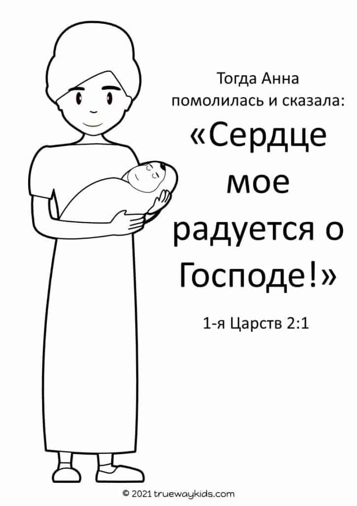 Объясните, как Анна дала обещание Богу. Она сказала Ему, что если Бог даст ей ребенка, она вернет ребенка Богу. Приведите примеры того, как мы иногда говорим что-то подобное. Например: «Если ты позволишь мне выйти поиграть, я уберу игрушки в своей комнате, когда вернусь». Но потом мы забываем или не хотим выполнять свое обещание. Анна сдержала свое обещание Богу. Поговорите о том, что мы не должны обещать то, что мы не будем делать.