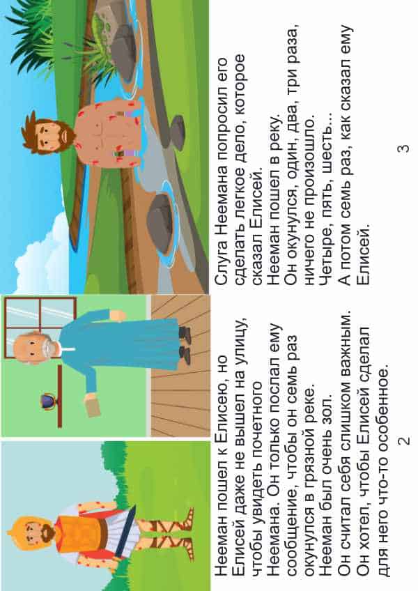 Объясните, что Нееман должен был полностью повиноваться Богу. Он семь раз окунулся в реке и был очищен. Убедитесь, что ваш ребенок понимает, что не река исцелила его, а Бог.
