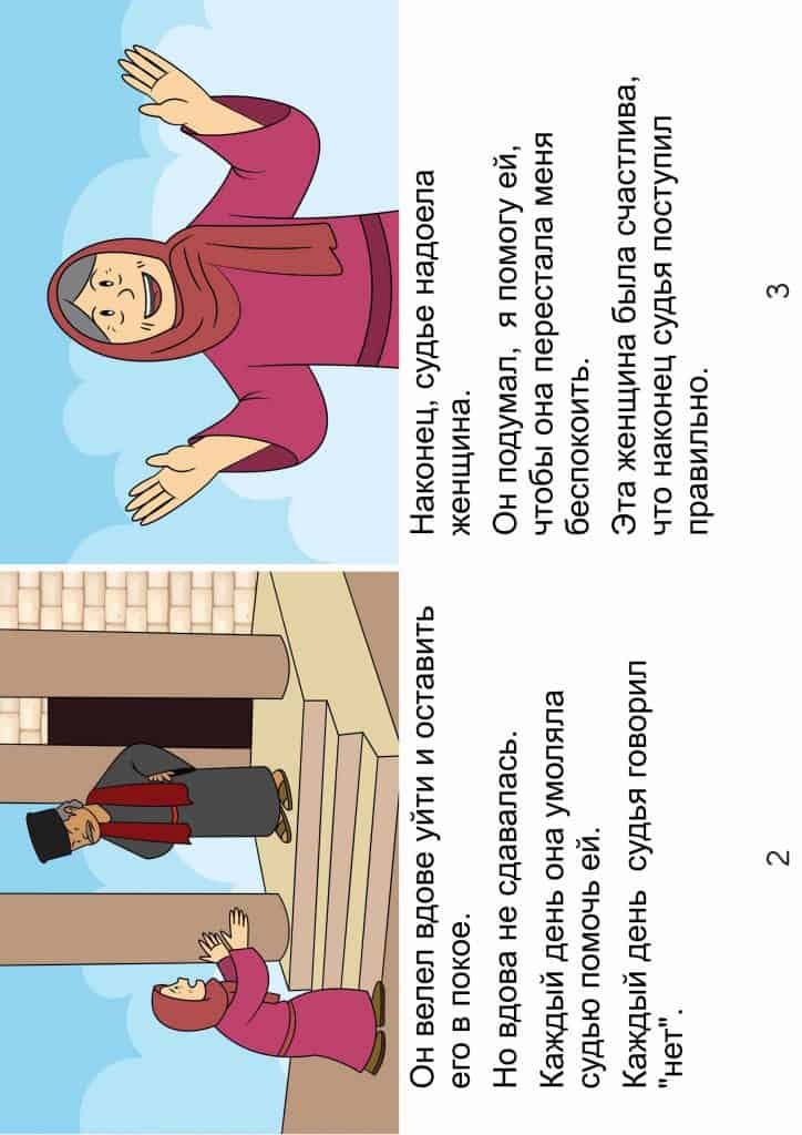 Очень важно показать ребенку, что судья в притче не Бог. Он даже не такой как Бог. Бог добр! Иисус использует судью чтобы сопоставить с Богом. Поговорите о некоторых противоположенностях, таких как светлый и темный, медленный и быстрый.