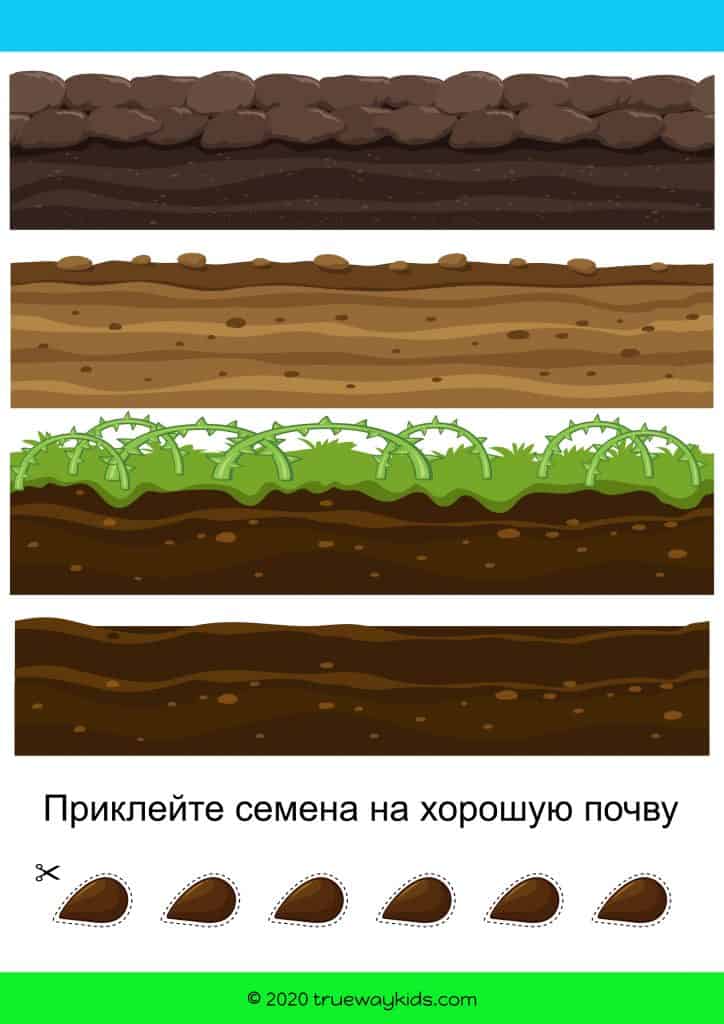 Один из лучших способов, который поможет детям понять эту притчу, это посадка семян в землю. Садоводство с детьми вовлекает все их чувства и является отличным инструментом обучения и понимания. Также вы помогаете ребенку полюбить здоровое питание. Для объяснения данного урока, посадите семена, найдите и вырвите сорняки, поговорите о том, почему некоторые растения растут в определенных местах.