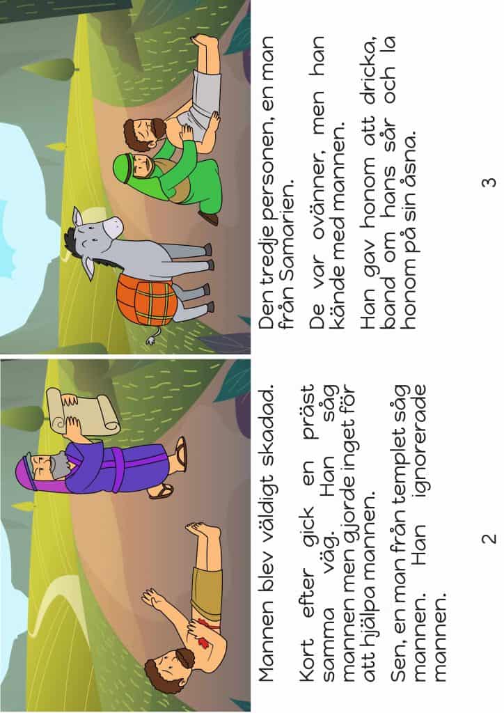Berätta att under Jesus tid, var samarier hatade människor. Judarna behandlade inte samarierna så bra. Men den samariska mannen stannande ändå och hjälpte den skadade mannen. Men de personer som borde ha varit den skadade mannens vänner ignorerade honom.