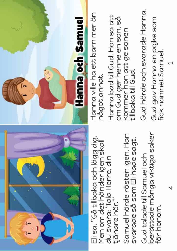 Idag ska vi får lära känna Hanna och Samuel. Vi kommer att ta upp Samuels födelse och hans liv i templet som ung pojke. Dagens bibeltext hittas i 1 Samuelsboken 1–3. Några nyckelpunkter i dagens undervisning: