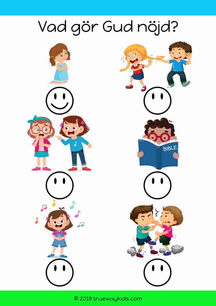Diskutera olika sätt att göra Gud nöjd. Tacka Jesus för att han är ett gott exempel för oss att följa. Be honom att alltid hjälpa oss att följa hans goda exempel.