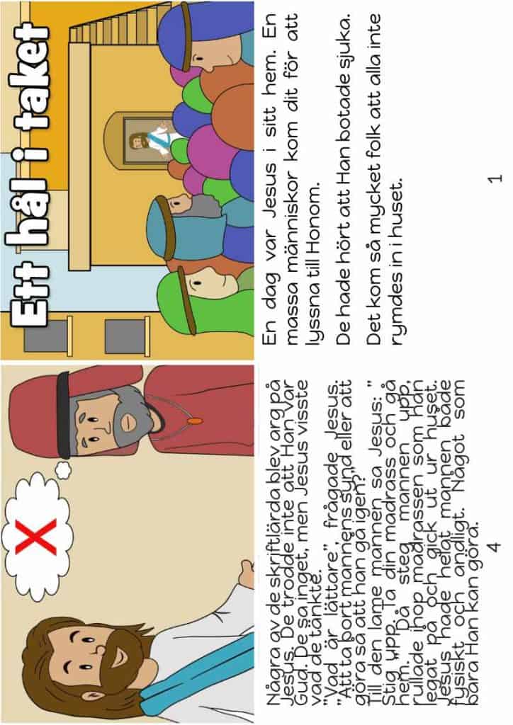 Fråga ditt barn vem hens vänner är. Fråga vad som är det snällaste som hen har gjort för sin vän och vad som är det snällaste hens vän har gjort för hen. Fundera tillsammans vad vänner gör för varandra och hur vi kan visa att vi bryr oss om varandra. Förklara att den lame mannens vänner ville hjälpa honom bli frisk. Så de bar honom till huset där Jesus var.