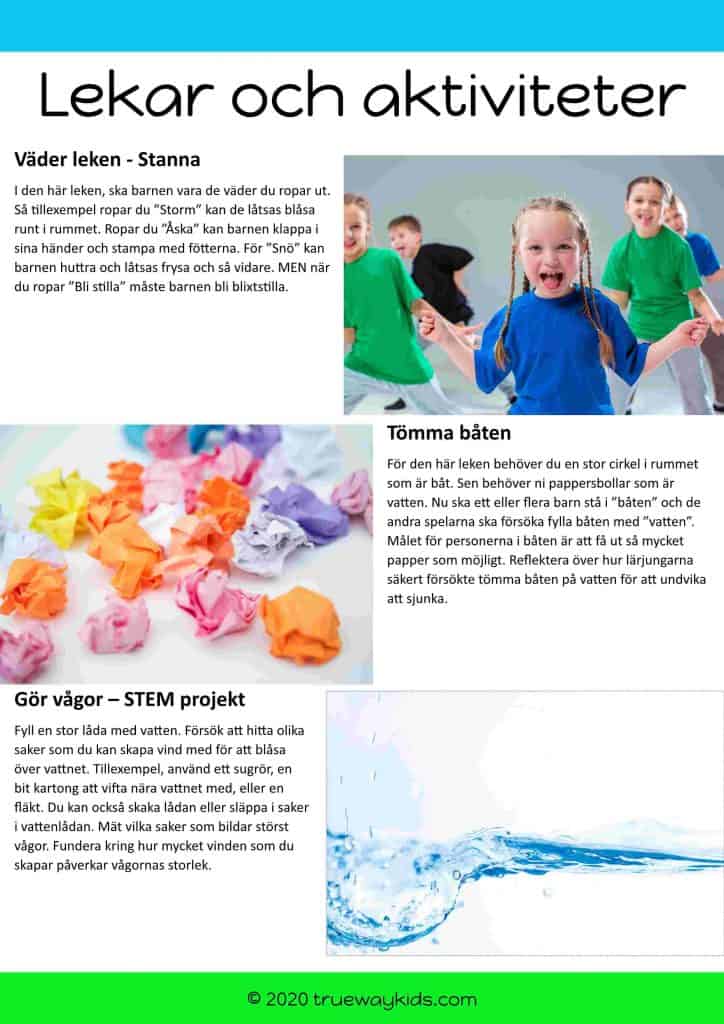 Berätta om att Jesus sa till vågorna och stormen att vara stilla, och att ovädret direkt lydde honom. Prata om hur ni ibland önska att ni kunde ändra vädret, tillexempel om det är för blött för att leka utomhus. Förklara att människor inte har makten över vädret, men Gud har makten över allting. Påminn dina barn att ”ingenting är omöjligt för Gud” Förklara att allting är under hans kontroll och måste lyda honom. Stormar, virus, människor, ingenting har mer makt än Gud.