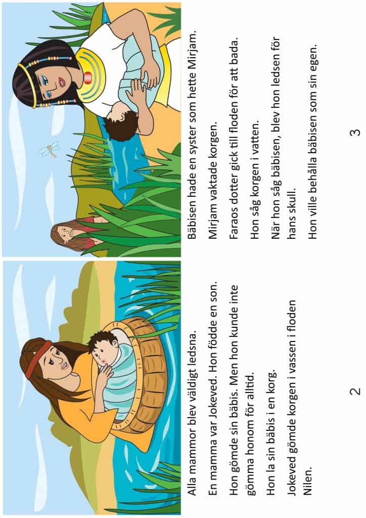 Vår lektion denna vecka kommer titta på berättselsen om Moses som bäbis. Berättelsen finns i 2 mosebok. Fundera på att berätta berättelsen vid ett vattendrag i närheten för att hjälpa barnen att visualisera scenen. Några huvudpunkter vi kommer undersöka idag är: