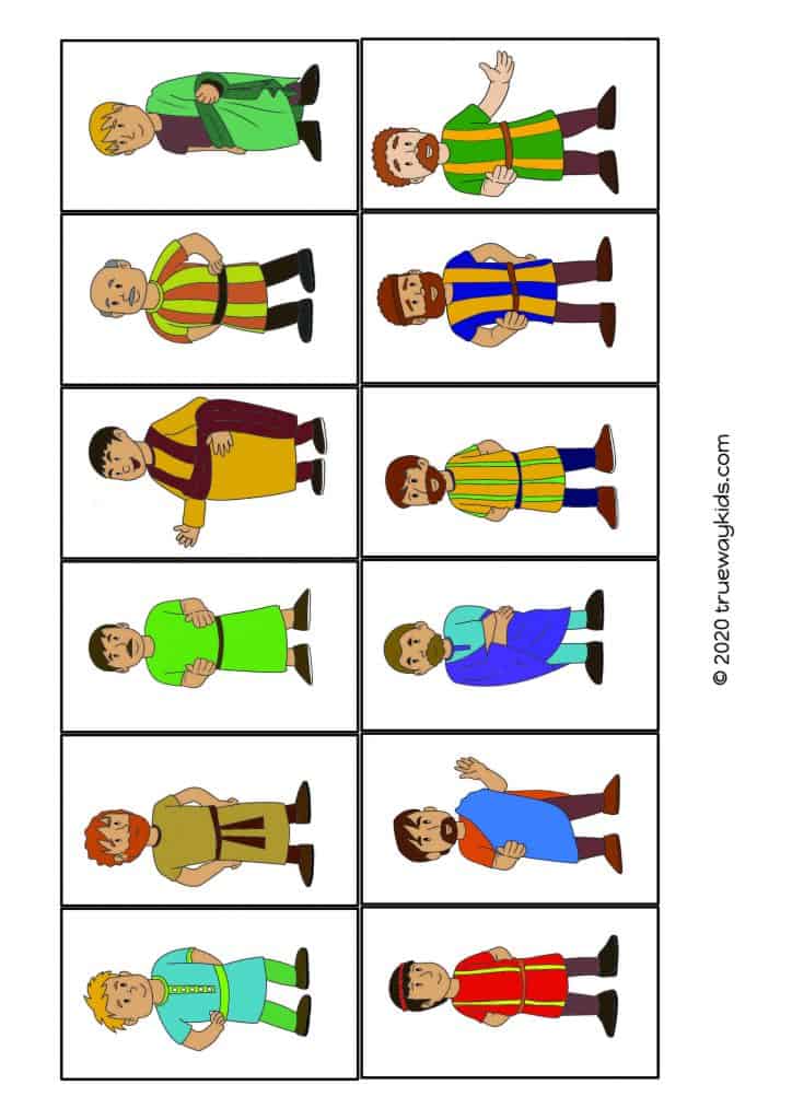 Chúa Giê-xu đã chọn mười hai người, đào tạo và trang bị để họ giúp Ngài trong chức vụ trên thế gian của Ngài. Hãy hỏi xem các cháu có nhớ tên môn đồ nào không. (Chúng ta đã kể chuyện Si-môn Phi-e-rơ, Anh-rê và Ma-thi-ơ.) Nhắc lại rằng Chúa Giê-xu đã dùng chính tên của họ để gọi họ theo Ngài.