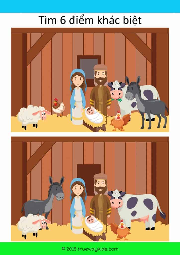 Nhà trọ quá nhỏ đối với Ma-ri và Giô-sép như thế nào. Bạn có thể tạo ra một “khách sạn” bằng cách đặt khăn trên sàn nhà. Đặt một đồ chơi trong mỗi “phòng”. Sau khi các phòng đã đầy, đem Ma-ri và Giô-sép ra, và giải thích rằng không còn phòng nào cho họ nghỉ qua đêm cả. Chủ quán đã đồng ý để họ ở trong chuồng gia súc của mình. Chúa Giê-xu rất khiêm nhường khi sinh ra trong một chuồng gia súc. Bạn có thể nói về nơi bé được sinh ra – bệnh viện, nhà, v.v… Nếu được bạn có thể đưa bé đến thăm một chuồng bò.