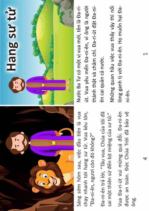 Tuần trước, chúng ta học câu chuyện Đa-ni-ên và ba bạn chọn đứng về phía Chúa. Bài tuần này là câu chuyện Đa-ni-ên trong hang sư tử. Phần Kinh Thánh này chép trong Đa-ni-ên 6. Những điểm chính là: