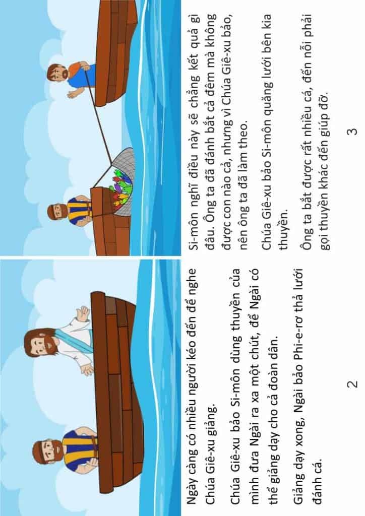Phi-e-rơ và Anh-rê là ngư dân. Họ kiếm sống bằng cách chèo thuyền, ném lưới xuống nước và bắt cá. Nếu muốn, bạn có thể chọn một video trực tuyến để cho bé thấy ngư dân đánh bắt cá thế nào.