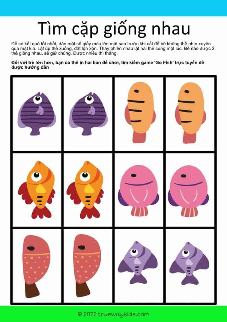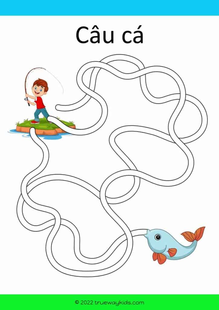 Làm một cần câu với một dây len. Dùng một viên nam châm hoặc kẹp giấy để bắt cá. Để trò chơi khó hơn, hãy thêm số, hình dạng hoặc chữ cái vào cá và bảo bé câu chính xác.
