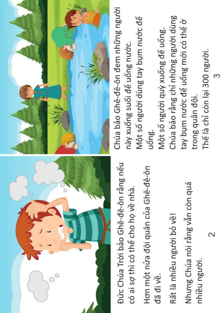 Nhắc về Ghê-đê-ôn, được Chúa gọi làm một Quan Xét và đem quân đi chinh phạt dân Ma-đi-an. Hỏi bé là Ghê-đê-ôn phấn khởi hay sợ hãi khi Chúa gọi anh. Lúc ấy, quân Ma-đi-an rất đông và mạnh.