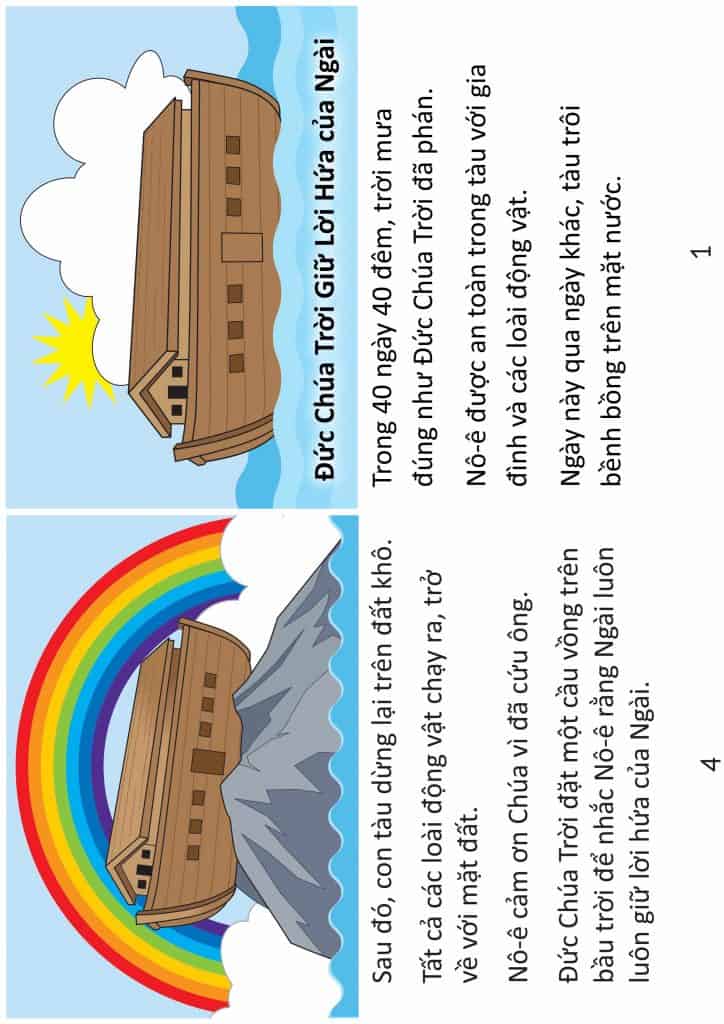 Bài học tuần này tiếp tục phần 1 bài Chiếc Tàu Nô-ê. Nếu chưa có, bạn có thể tải về từ truewaykids.com miễn phí. Bài học tuần này tập trung vào những lời hứa và sự thành tín của Đức Chúa Trời. Đoạn Kinh Thánh sẽ đọc là Sáng thế ký 8-9. Một số điểm chính là: