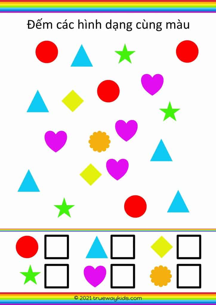 Cho bé xem hình cầu vồng. Đếm màu sắc với bé. Giải thích rằng Đức Chúa Trời đặt cầu vồng trên bầu trời để nhắc chúng ta rằng Ngài luôn luôn giữ lời hứa của Ngài.