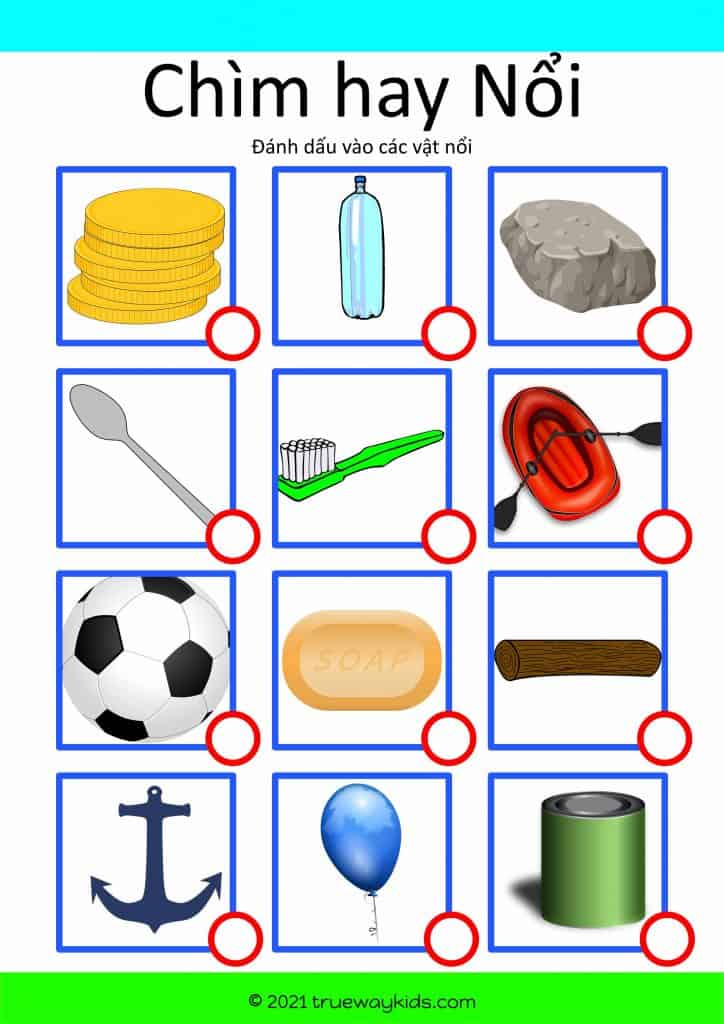 Đổ đầy nước vào cái thau (hoặc sử dụng vùng nước cạn ở mép sông). Lấy một chiếc bánh của thú cưng và thả nó xuống nước. Cho bé thấy rằng chiếc bánh không được bảo vệ an toàn trên mặt nước vì nó đã bị chìm. Đặt chiếc bánh của thú cưng trên một tảng đá. Hỏi bé xem nó an toàn không. Thả viên sỏi xuống nước và cho đứa trẻ thấy rằng viên sỏi cũng bị chìm.