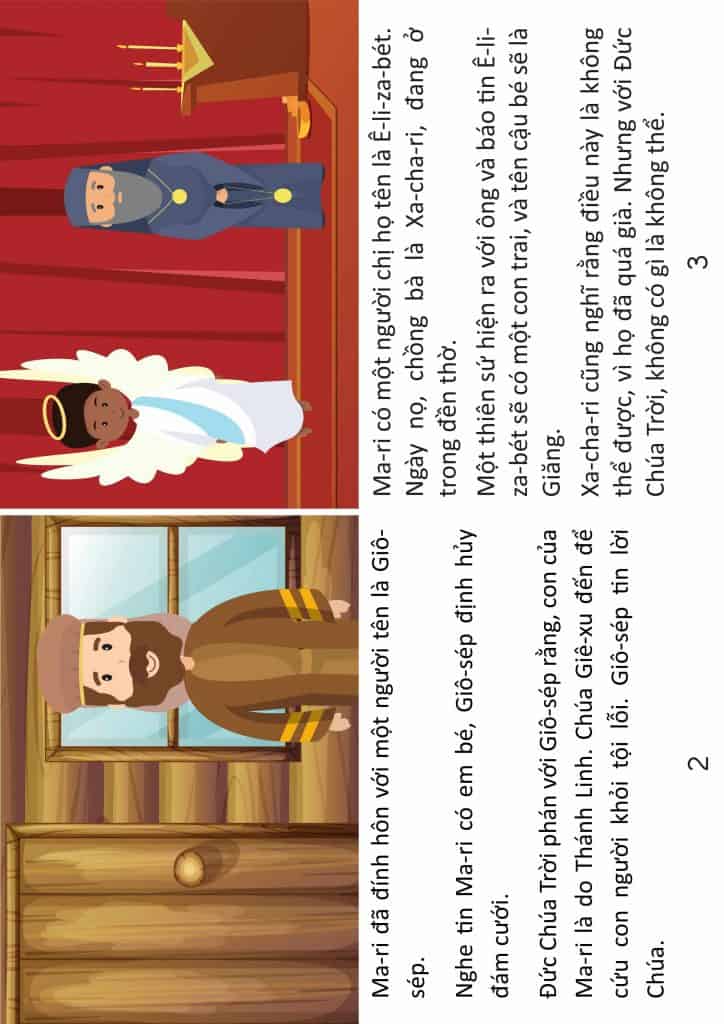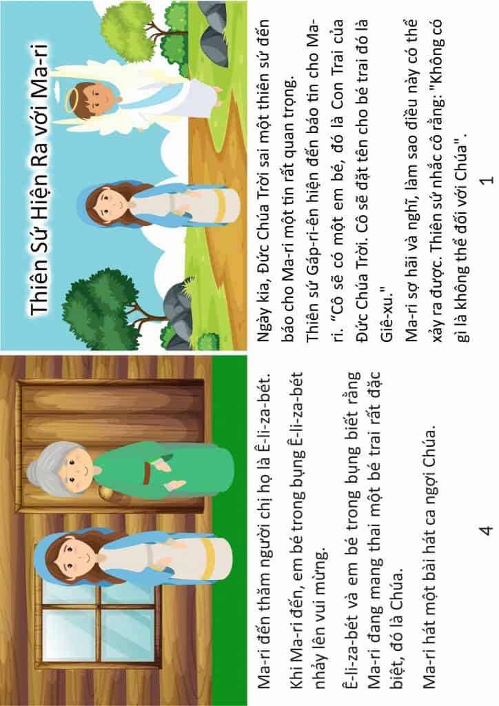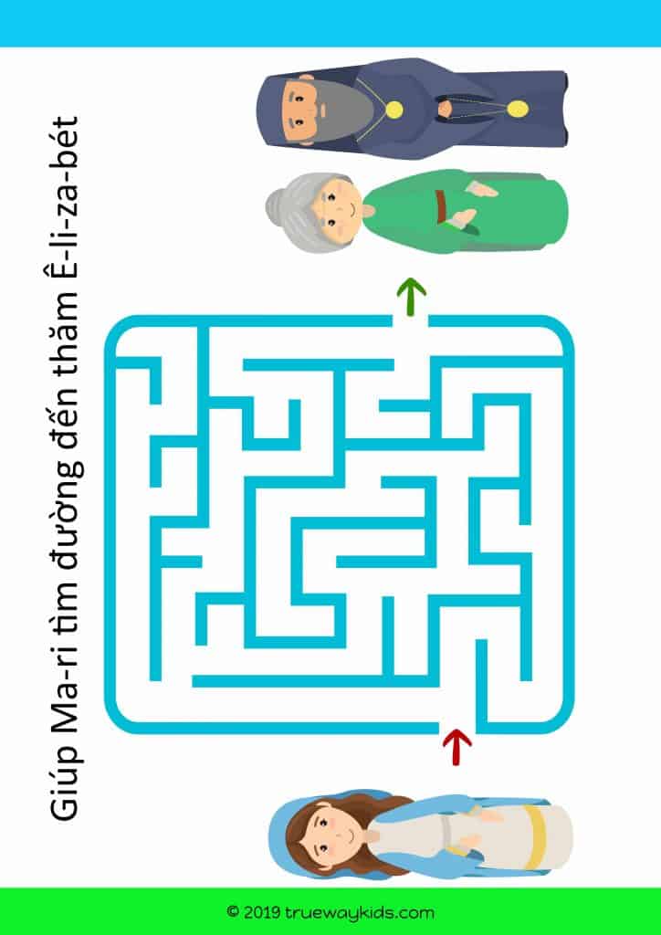 Hỏi xem bé có biết Ma-ri là ai không. Giải thích rằng Ma-ri là một cô gái Do Thái đơn sơ, kính sợ Chúa. Đức Chúa Trời chọn nàng để sinh Con Ngài. Mọi người sẽ nhạo cười Ma-ri khi làm theo lời Chúa, nhưng nàng vâng lời Ngài, bất chấp con người. Mọi người nghĩ rằng Ma-ri làm một điều xấu, nhưng không phải vậy. Nhắc bé rằng chúng ta phải vâng lời Chúa, dù người khác có nói gì đi nữa.